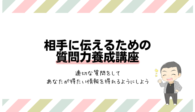 ホームはじめに 相手に伝えるための質問の仕方 2022年2月4日2022年6月2日 このコンテンツを閲覧するにはログインが必要です。お願い ログイン. あなたは会員ですか ? 会員について 返信をキャンセルする。コメントを残すにはログインしてください。 上に表示された文字を入力してください。 Δ